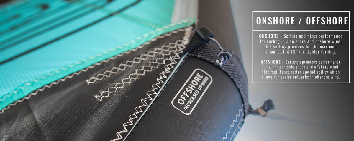3 Struts, Hybrid-Design, moderate Aspect Ratio (Streckung), Surf/Drift-Wingtip-Design, 2 Bridle-Setting-Optionen