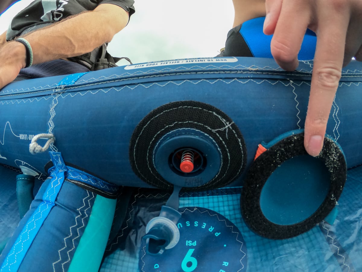 Gut gefallen hat uns zudem das Ventil: durch den besonderen Aufsatz hält der Schlauch deutlich fester am Ventil und rutscht weniger ab. Zudem reicht nach dem Luft-Ablassen ein einziger Klick auf den Stift und es kann kein Sand mehr in den Kite gelangen.
