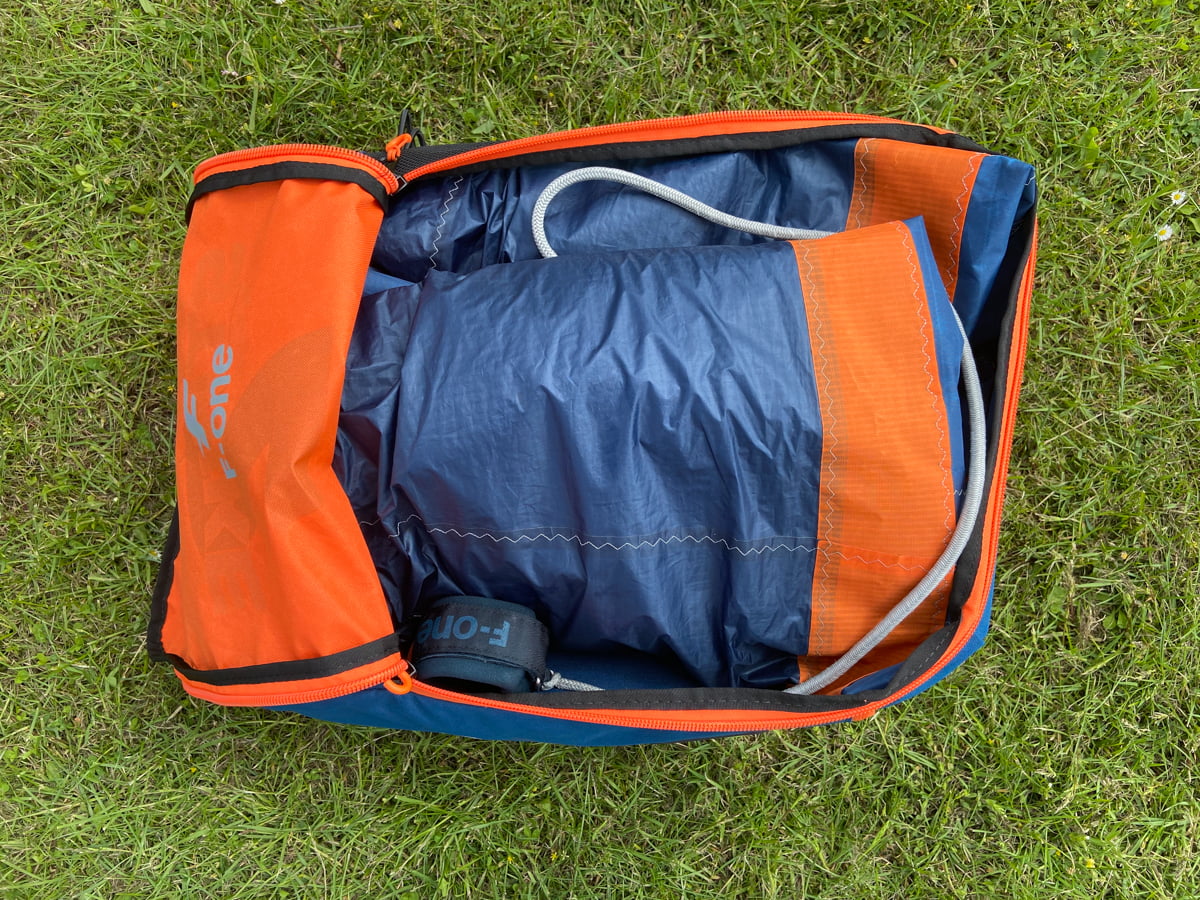 Wie üblich ist die Verarbeitung von F-One tadellos. Bereits beim Auspacken des neuen F-ONE Strike V2 merkt man sofort, hier wurde mitgedacht. Die Tasche fällt in einer angenehmen Größe aus, sie ist weder zu groß, noch muss man sich beim Packen groß Mühe geben, um den Wing nach der Session wieder ordentlich zu verstauen. Des Weitern findet außen am Bag eine Pumpe ihren Platz, es gibt ein kleines Fach für Schlüssel /Getränk und an ein Belüftungsmesh wurde ebenfalls gedacht.